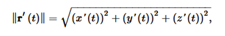 \[ ds = \sqrt{\left(\frac{dx}{dt}\right)^2 + \left(\frac{dy}{dt}\right)^2 + \left(\frac{dz}{dt}\right)^2},dt. \]
